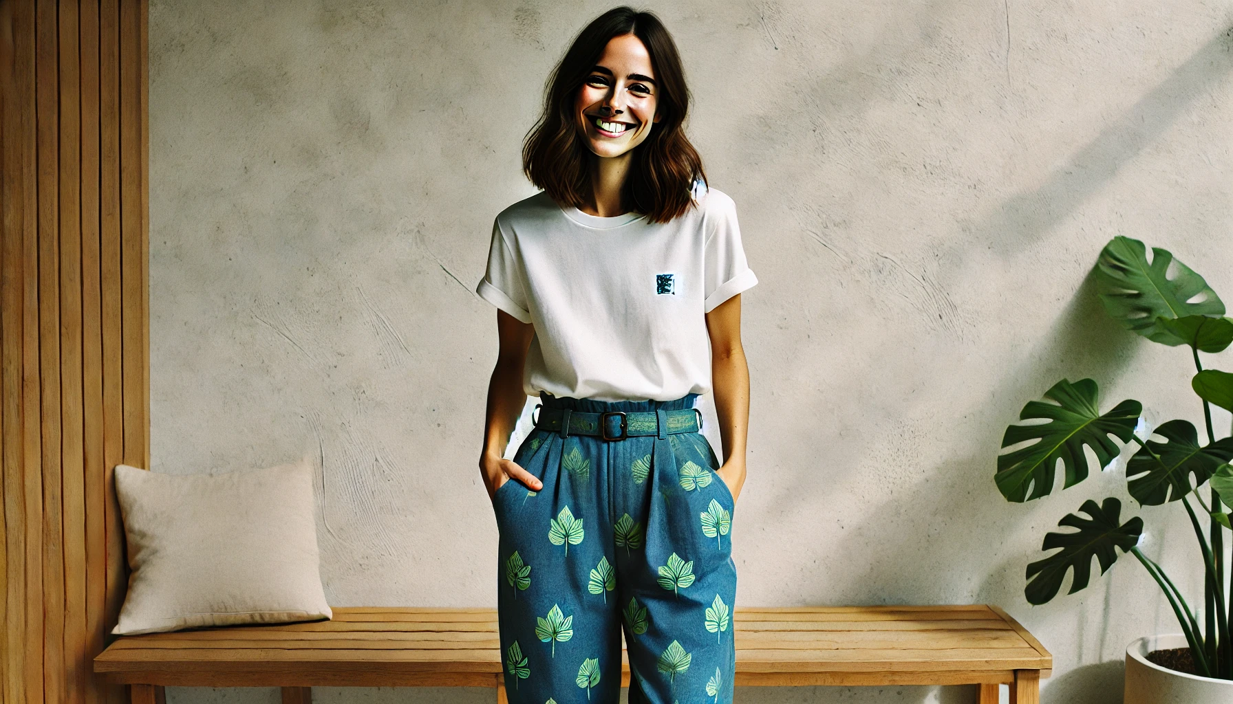 - Motif élégant avec des feuillages pour un look chic et décontracté.