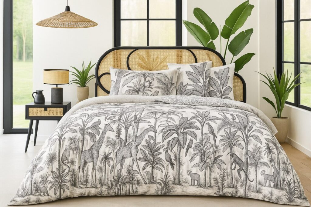 Avec Jungle Fantastique, Françoise Saget signe une parure qui allie design fort, confort naturel et accessibilité. Disponible avec jusqu’à -60% de remise, livraison offerte dès 45€, et paiement en 3x sans frais, cette parure est un bon plan immanquable pour relooker votre chambre avec style. Attention : les modèles les plus demandés partent vite… ne ratez pas cette explosion tropicale pour vos nuits !