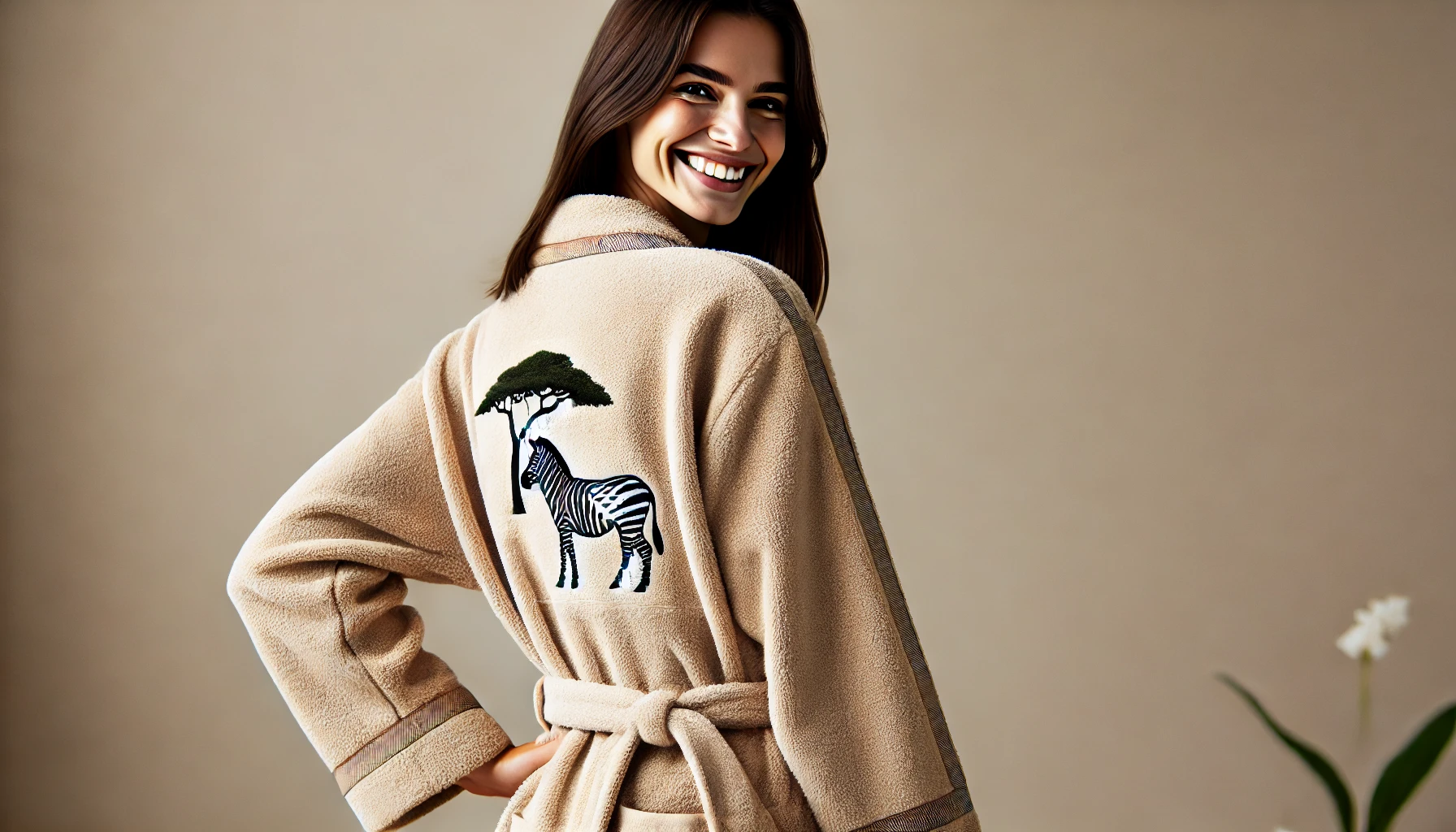 Pour une salle de bain élégante et des moments de détente luxueux, choisissez le peignoir « À l’Orée de la Savane » de Françoise Saget. Sa qualité exceptionnelle et son design exotique en font un choix parfait pour votre maison. Découvrez la collection ici !