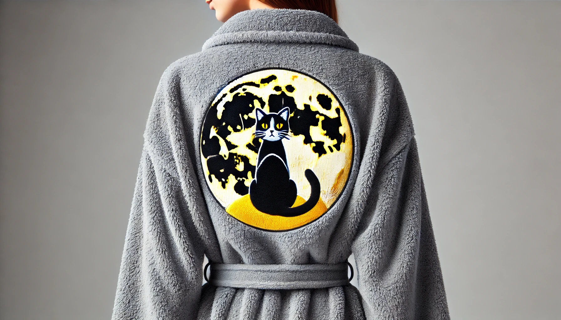Transformez vos moments de détente en une expérience luxueuse avec le peignoir « Dans la Lune » de Françoise Saget. Ce peignoir, certifié OEKO-TEX® STANDARD 100, est conçu pour offrir une douceur et un confort incomparables, tout en ajoutant une touche d’élégance à votre salle de bain grâce à son superbe motif de chat se reposant sur une lune étoilée.