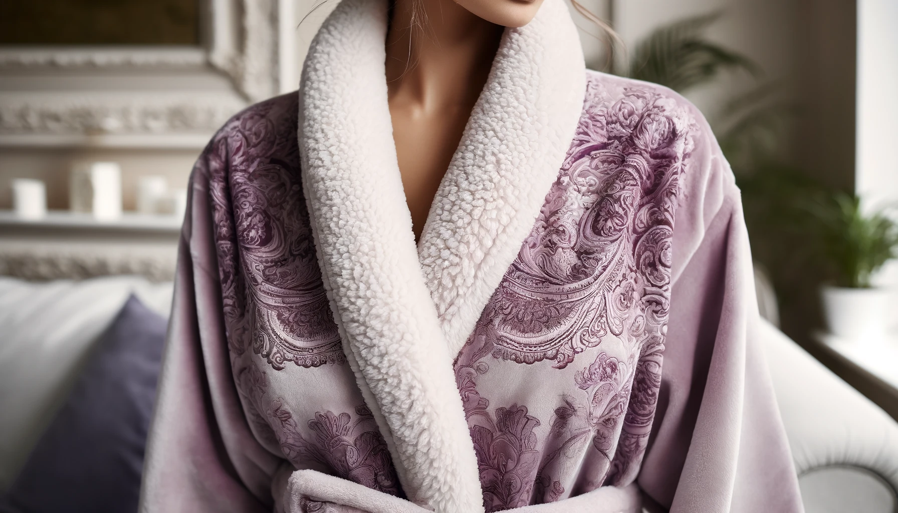 Ce peignoir se distingue par son tissu doux en coton et sa doublure éponge absorbante, offrant confort et praticité. La couleur parme et la douceur du motif ajoutent une touche de féminité et de raffinement.