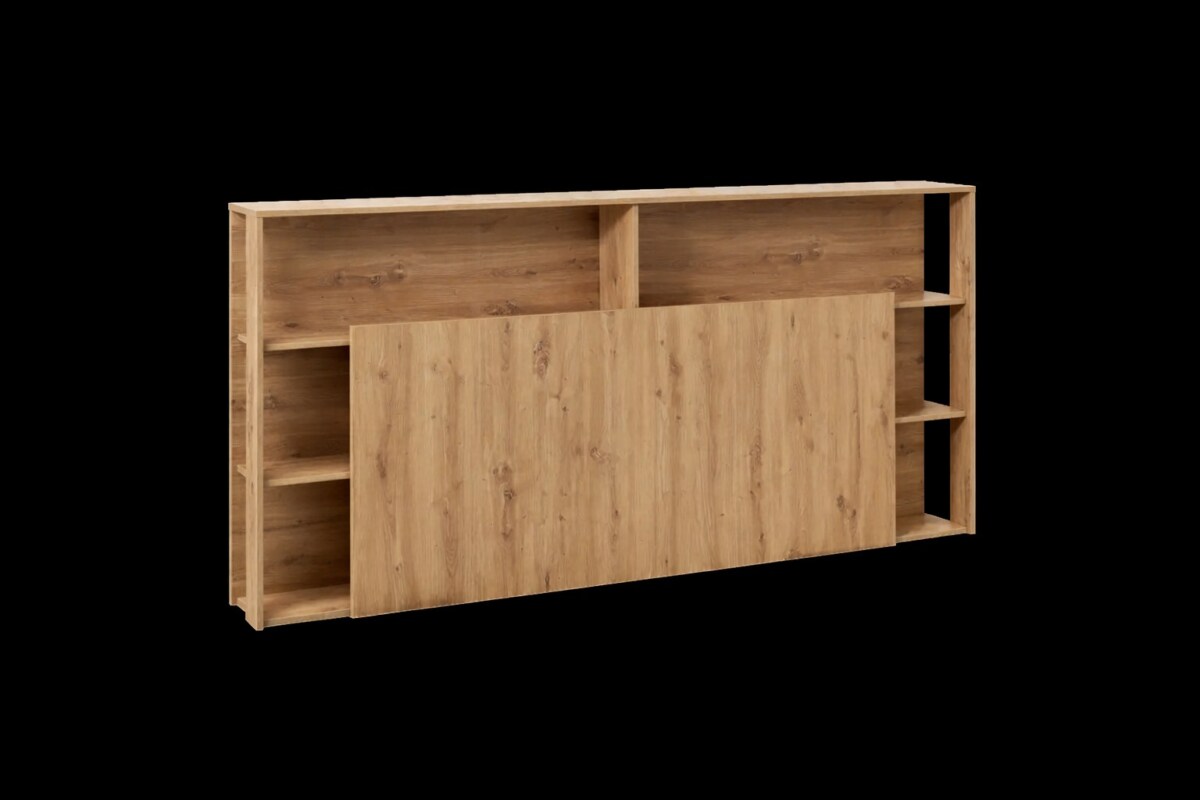 Mais au-delà du style, c’est son intelligence de conception qui fait la différence. Avec ses niches latérales et ses deux grandes étagères supérieures, elle remplace avantageusement des tables de chevet encombrantes. Téléphone, lunettes, tablette, réveil, romans en cours : tout trouve sa place. Les passe-câbles intégrés permettent de garder un espace net et organisé, sans fils qui traînent. Même les plinthes ne posent pas problème grâce au décroché arrière permettant de plaquer la tête de lit contre le mur.
