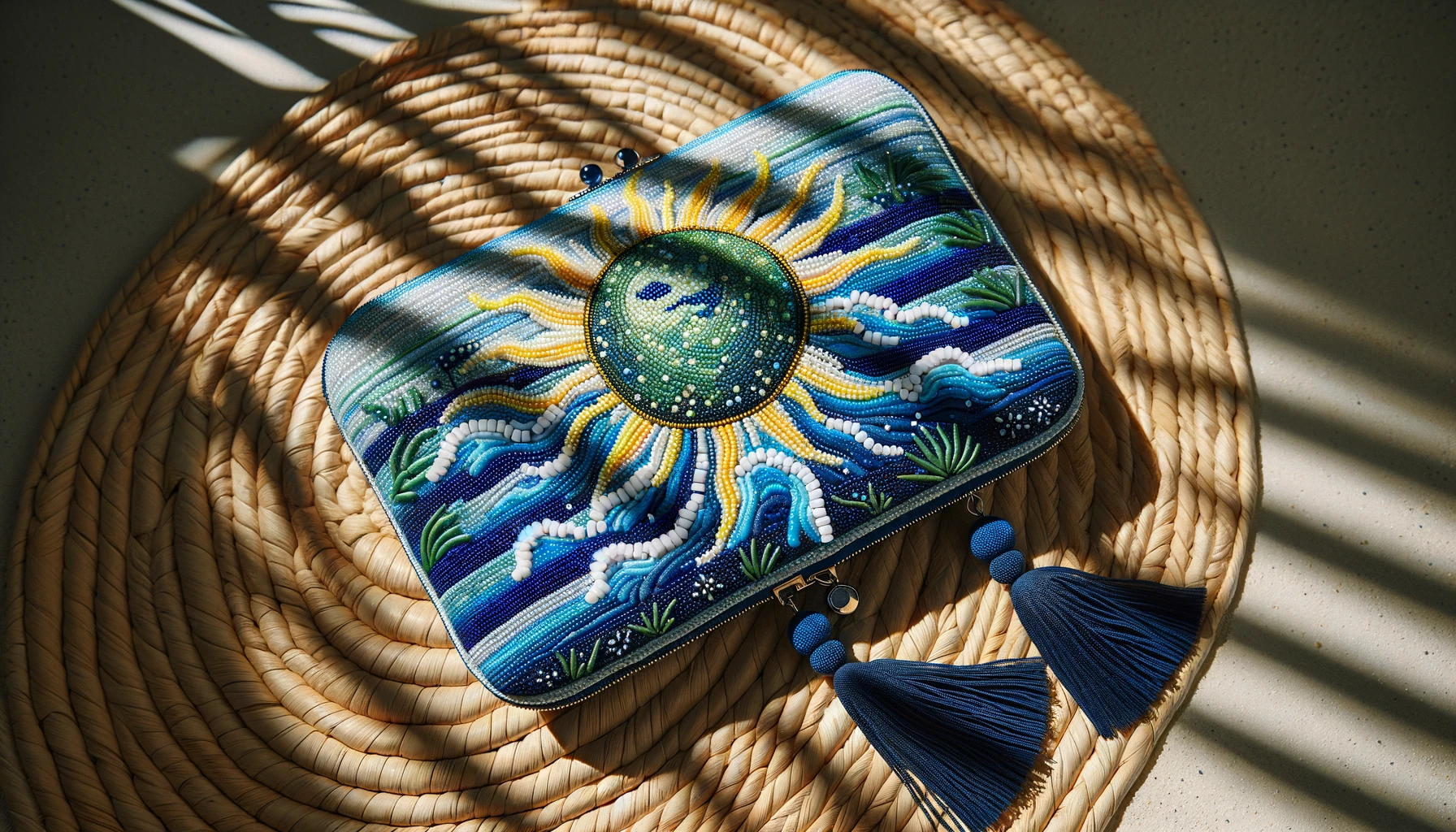 Cette pochette est idéale pour garder vos petits objets personnels organisés et à portée de main. Le design inspiré par l’océan, avec ses détails de broderie et ses perles, apporte une touche de créativité à votre accessoire quotidien.