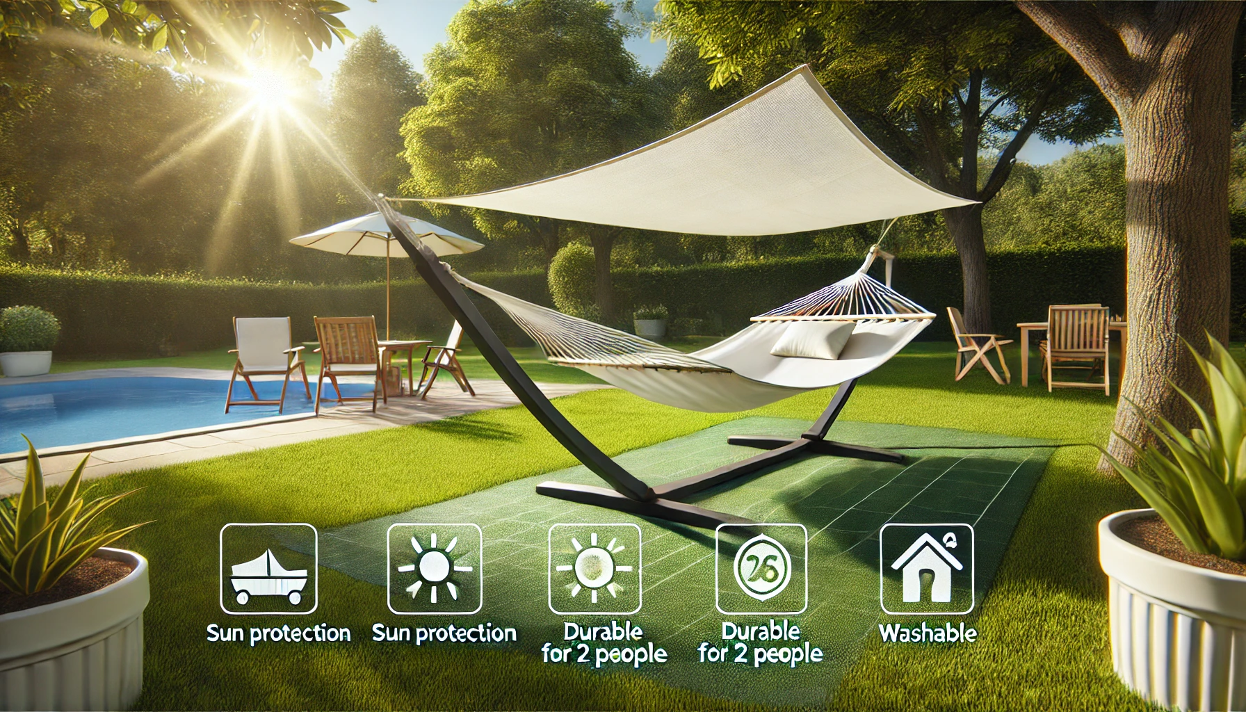 - Matériaux de qualité : Support en bois robuste et hamac en toile résistante.
