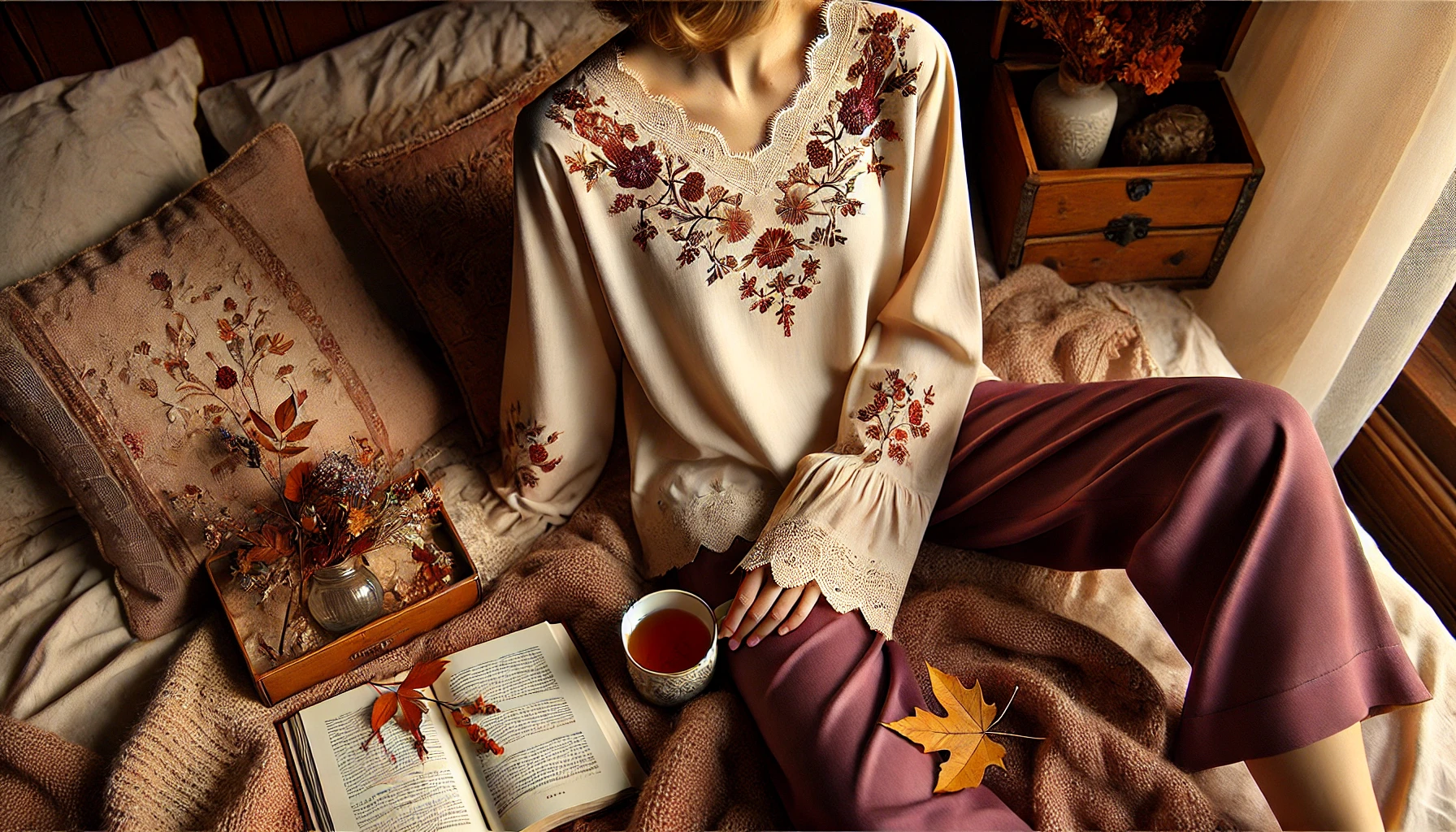 Si vous cherchez un pyjama doux, féminin et parfait pour la mi-saison, le modèle « Sonate d’Automne » est une excellente option pour allier confort et élégance.