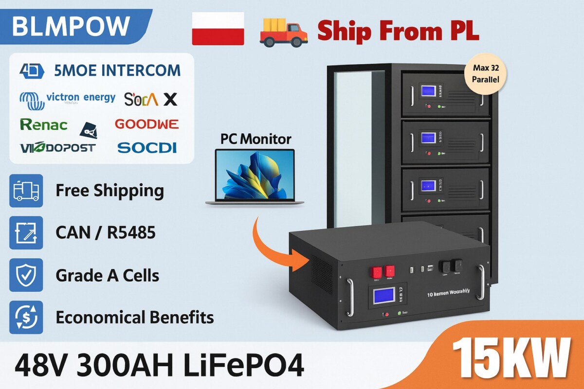 Les batteries LiFePO4 représentent l’avenir du stockage énergétique : plus stables, plus sûres, plus durables et sans entretien, elles surpassent de loin les anciennes technologies plomb ou lithium classiques. Ce modèle 48V 300Ah (ou déclinaisons 100Ah / 200Ah selon vos besoins), offre jusqu’à 15 KWh de capacité, ce qui est idéal pour une maison équipée de panneaux solaires ou un système d’alimentation de secours fiable.