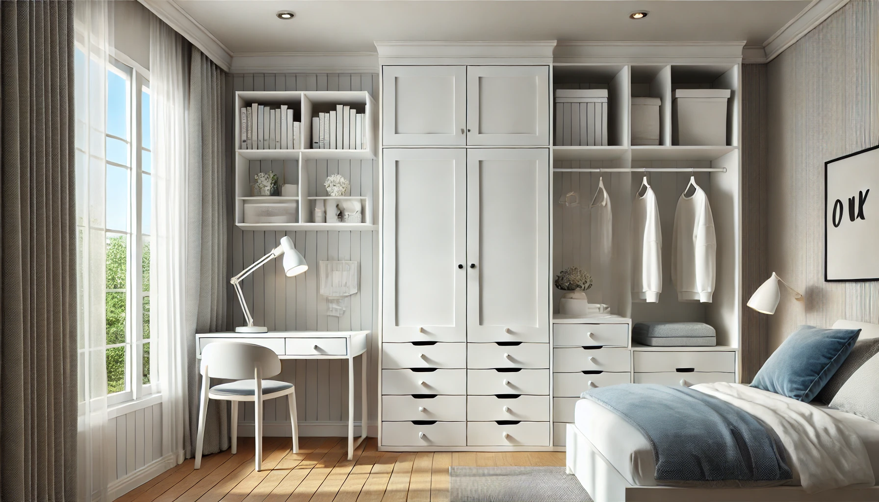 Cette armoire s’intègre facilement à tous les styles d’intérieur grâce à son design moderne et sa couleur blanche, idéale pour une chambre ou un dressing.