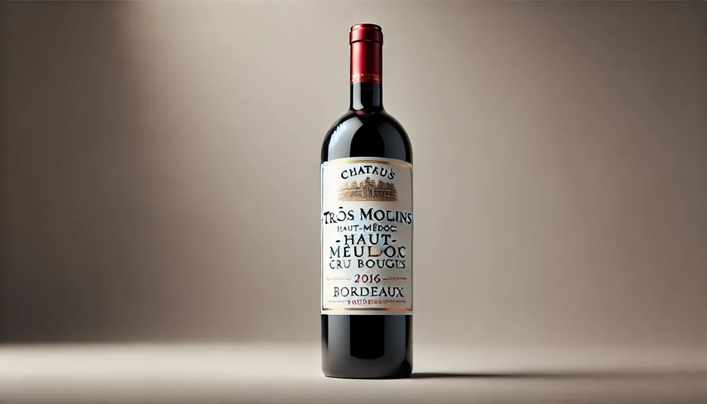Les amateurs de vins de Bordeaux seront ravis de découvrir le Château Trois Moulins 2016, un Haut-Médoc Cru Bourgeois alliant tradition et excellence. Actuellement disponible à un prix attractif, ce vin rouge est une opportunité à ne pas manquer pour enrichir votre cave avec une cuvée de qualité.