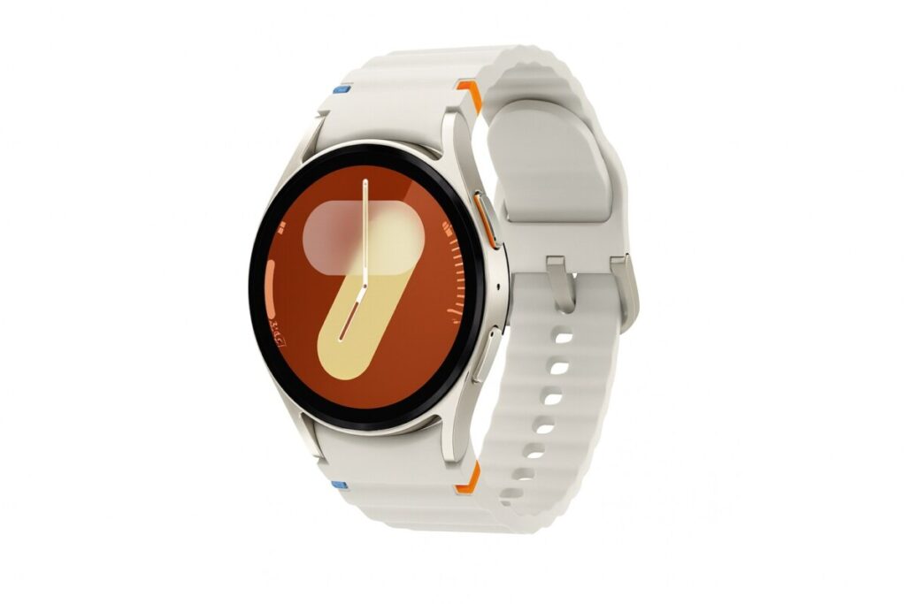 Avec son cadran de 40 mm et sa finition aluminium crème, la Galaxy Watch7 séduit par sa sobriété élégante. Son bracelet en silicone doux, confortable au quotidien, s’adapte à toutes les tenues — sport ou bureau.