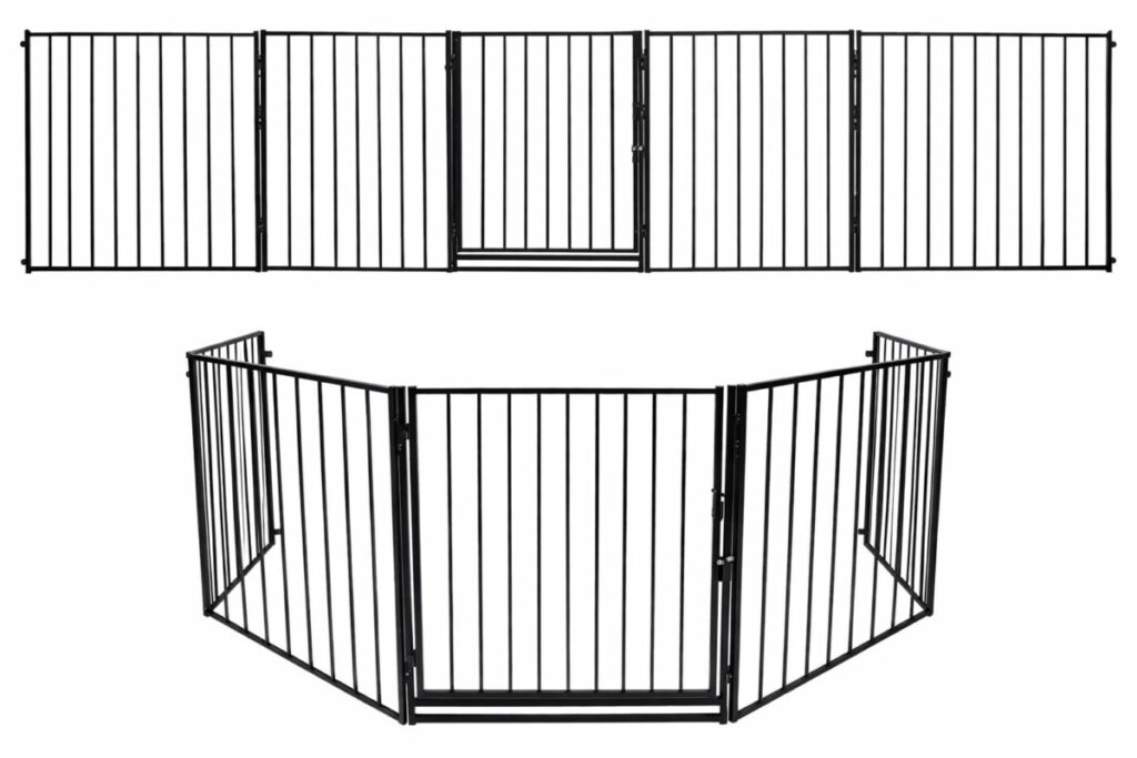 Swanew – Barrière de sécurité en métal noir pliable, 305 cm de longueur, hauteur 76 cm, porte double sens, idéale pour cheminée, enfants et chiens.