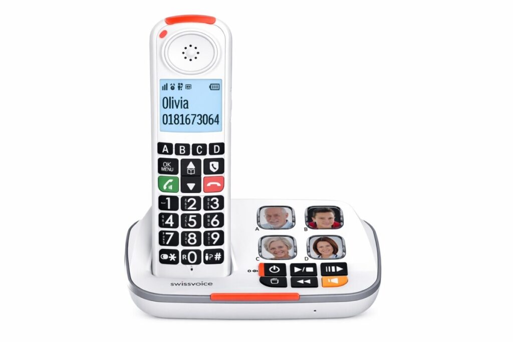 Il intègre un répondeur numérique 30 minutes, une fonction mains libres, et même un indicateur lumineux d’appel entrant, très utile en cas de déficience auditive.