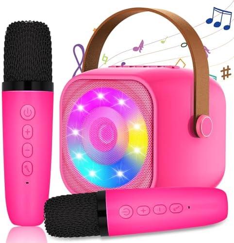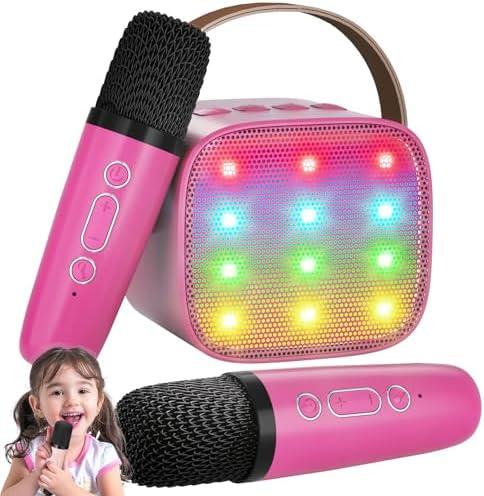 Karaoke Enfant avec 2 Microphones, Microphone Karaoké sans Fil, Haut-Parleur Bluetooth avec Micro, Jouet de Machine Karaoké avec LED Lumière pour Enfant Adulte Fille Cadeau Chanter