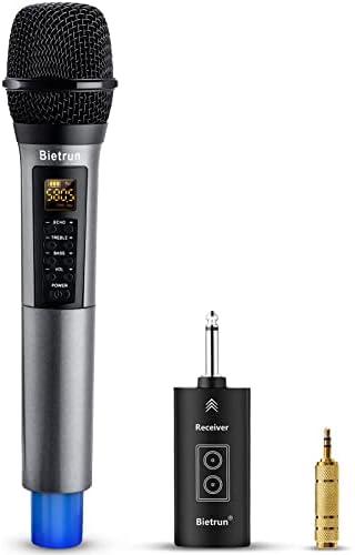 Bietrun Micro sans Fil Professionnel 30M, UHF Micro Karaoke avec Effets Sonores Basse/Echo/Aigu