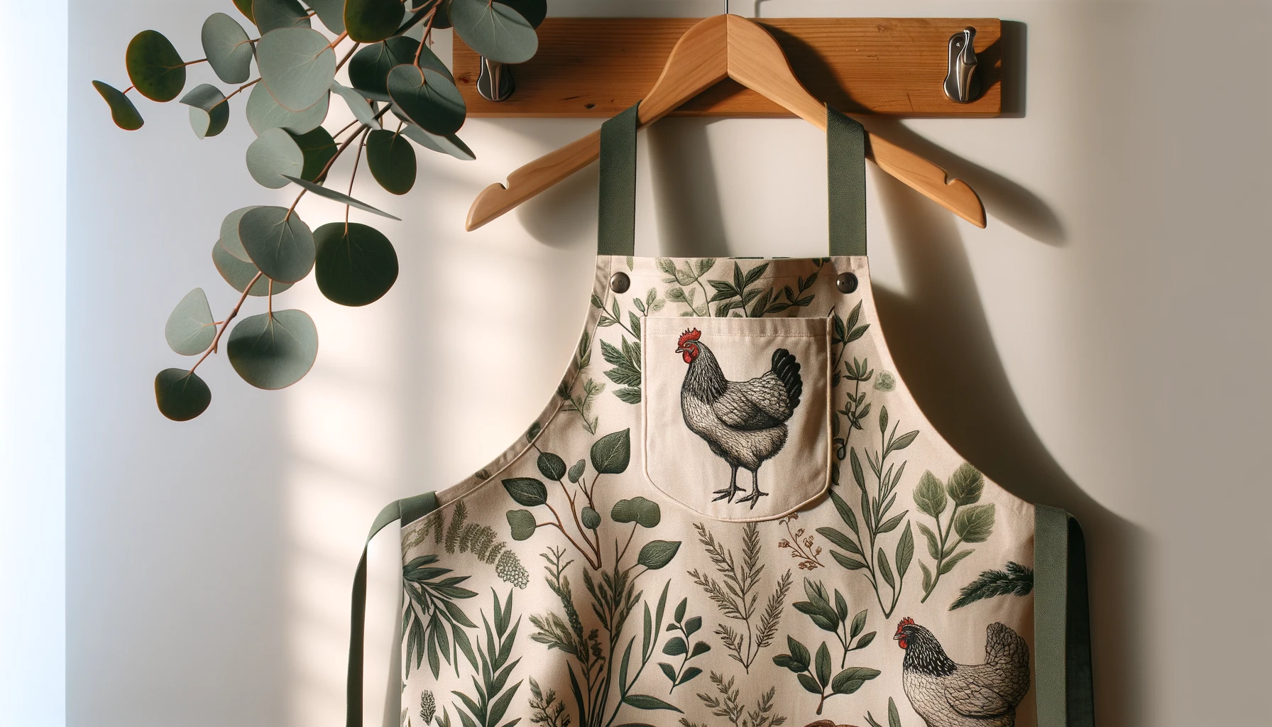Découvrez le tablier « Cocottes en Herbe » et laissez la magie de la campagne embellir votre cuisine et inspirer vos plats.