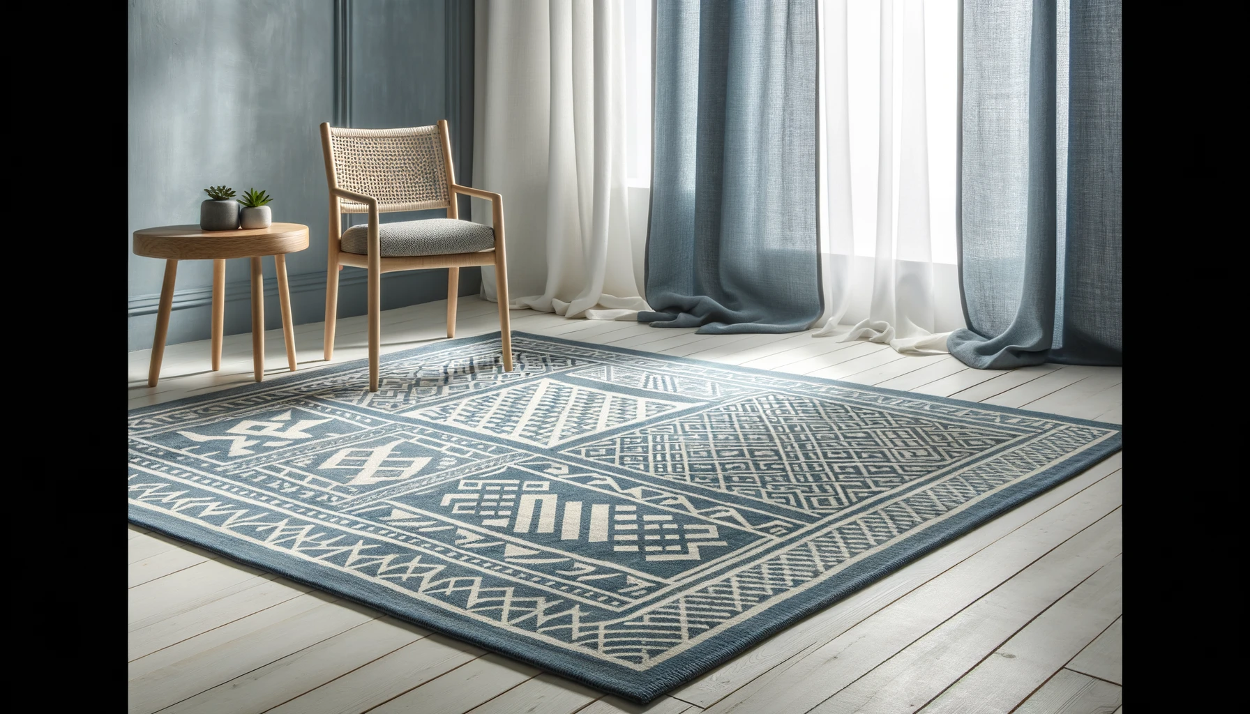 Ce tapis est disponible en dimension 120×180 cm, parfait pour divers espaces de vie. Son design en bleu indigo et sa texture en coton assurent à la fois durabilité et confort.