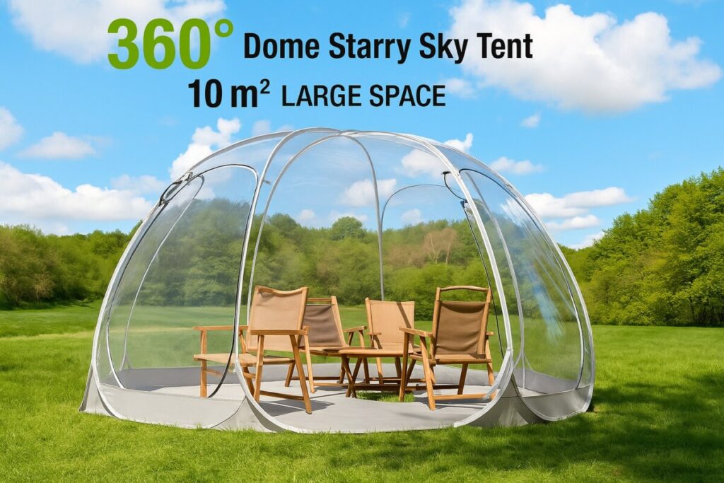Cette tente bulle vous permet de vous connecter pleinement à votre environnement sans compromis sur la sécurité ou le confort. Idéale pour le camping romantique, les dîners insolites, les salons de jardin d’hiver ou même comme abri temporaire sur une terrasse.