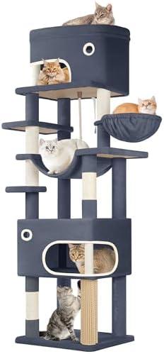- 1 Hzuaneri MS20318SG Cat Tree Multi-Level 203 cm Large Platform, 2 Kennels, 7 Scratching Posts, Poms, Baskets, Hammock, Suitable for Cats of All Sizes, Dark Grey MS20318SG