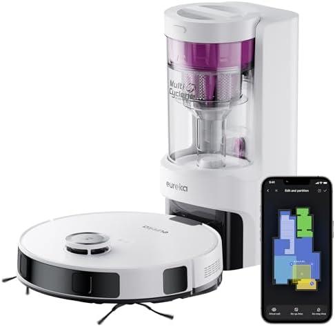 - 3 Eureka E10s Robot Vacuum Cleaner with Bagless Station Automatic Emptying, Floor Cleaner Robot, 4000Pa, Autonomy 180 Minutes, LiDAR Navigation, Obstacle Avoidance, for Pet Hair, White