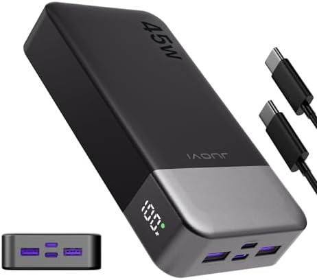 JUOVI Batterie Externe Charge Rapide, Batterie Externe 45w, Power Bank 20000mah, Batterie Externe USB C Charge, PD et QC Charge 4-Ports, avec Affichage LED pour Samsung iPhone 16 15 Pro Laptop