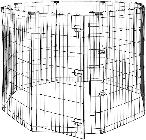 Amazon Basics Parc de jeu et d’exercice pliable en métal pour chiens et animaux de compagnie, Avec porte, 107 cm, Noir, Carré,Rond