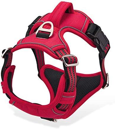 - 1 Harnais Chien Anti Traction, Harnais pour Chien Grand Moyen Réfléchissant Réglable Gilet Chien avec Poignée Respirante Harnais Poitrine de Sport sans Traction Rouge XL
