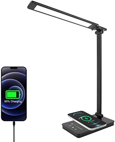 ERAY Lampe de Bureau LED Puissante, Lampes de Table Dimmable 5 Modes de Couleur, Lampe de Chevet Contrôle Tactile, Chargement Sans Fil, avec Port USB et Fonction Minuterie