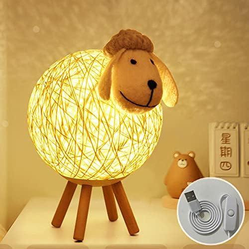 Osairous Veilleuse LED, Mouton Lampe de Chevet en Rotin, Veilleuse Enfant Projecteur, Lampe Nuit LED pour Chambre, Chambre Bébé, Salon, Cadeau, 110cm USB/Interrupteur Poussoir
