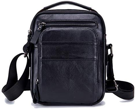 - 2 MANNUOSI Homme Sacs bandoulière cuir veritable Sacs business vintage Sacs à dos porté travers Pochettes Sacs à main voyage multifonctionnel Noir A
