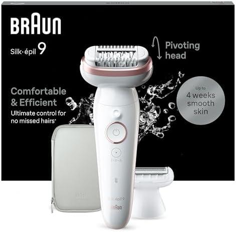 - 1 Braun Silk-épil 9 Epilator with Swivel Head for Easy Hair Removal, Waterproof, Long Lasting Soft Skin, with Shaver Head for Women and Clipper Clipper Clip, 9-030, White/Pink