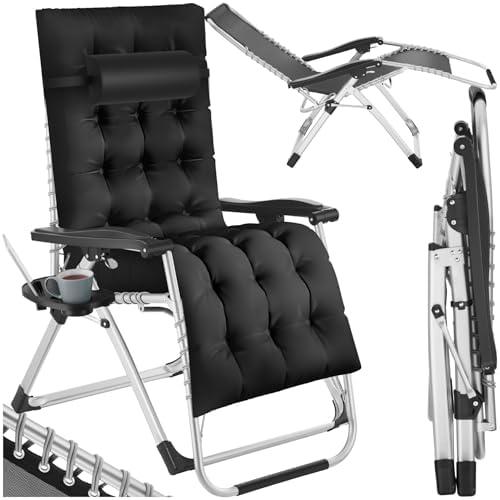 TecTake® Fauteuil de Jardin Chaise Longue Pliable & Inclinable avec Rembourrage, Repose Pieds, Accoudoirs, Appuie-tête Amovible Salon de Jardin Exterieur, Structure en Acier époxy, Mobilier de Jardin