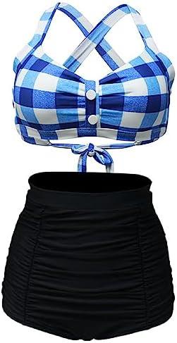 CheChury Maillot de Bain Tankini Femme 2 Pieces Sexy Eté Grande Taille Tankini Shorty Col en V Top Taille Haute Push up Rembourré Deux Pièces sans Manches Maillot de Plage
