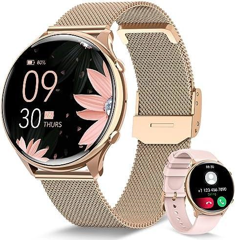 - 1 RUXINGX Montre Connectée Femme avec Appel Bluetooth 5.3, Smartwatch Suivi des Règles, 120+ Modes Sport, SpO2/Fréquence Cardiaque/Sommeil/Tension Artérielle, Podometre IP68 Étanche iOS Android Or Rose