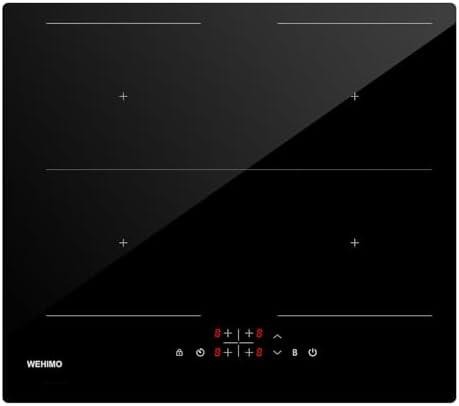 - 1 Plaque à Induction 4 Foyers Encastrable – WEHIMO Plaque de Cuisson Electrique 6800W – Zones Flexibles – 9 Niveaux de Puissance – Fonction Booster – Minuterie – Verrouillage Enfant – 60cm