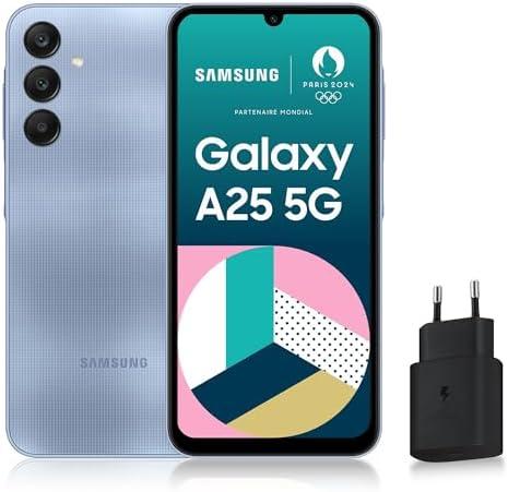 - 2 SAMSUNG GALAXY A25, Smartphone Android 5G, 256 Go, Chargeur secteur rapide 25W inclus [Exclusivité Amazon], Smartphone déverrouillé, Bleu, Version FR
