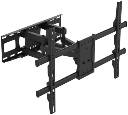 Parmi les points forts de ce support mural pour téléviseurs, on trouve sa construction en acier épaissi de haute qualité, qui en fait un produit solide et durable avec une capacité de charge maximale de 60 kg. Il permet également un gain d’espace considérable : en étant fixé au mur, la distance minimale entre la télévision et le mur est de 5,5 cm, et elle peut s’étendre jusqu’à 37 cm, ce qui libère de l’espace au sol et donne un aspect ordonné et élégant à votre intérieur. Le seul inconvénient que l’on pourrait relever est que, étant donné sa compatibilité universelle, il ne convient peut-être pas parfaitement à tous les téléviseurs et il vaut la peine de vérifier les exigences de fixation de votre téléviseur spécifique avant l’achat. Voir le produit sur Amazon.