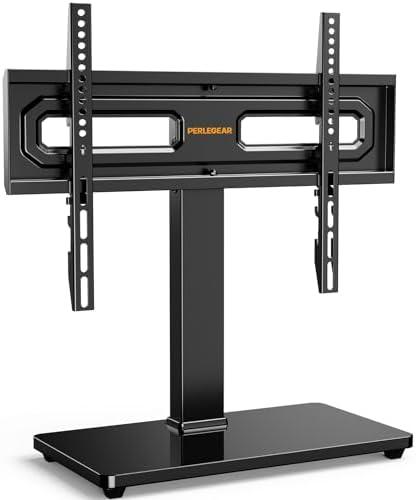 - 2 Perlegear Support TV sur Pied Universel Pivotant pour TV de 32 à 65 Pouces Plats ou Incurvés, Réglable en Hauteur et Base Stable, Support Universel Inclinable Max.Vesa 400×400 mm