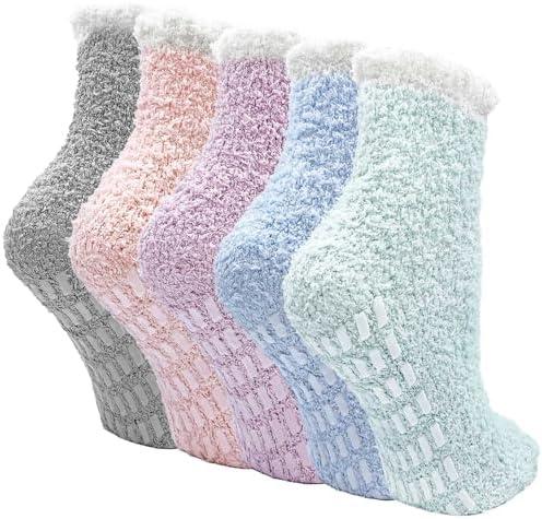 PUTUO Chaussettes Hiver Antidérapantes pour Femme: Chaussette Polaires Chaude en Hiver pour Femme Chaussettes Thermique Moelleuses Antidérapantes à la Maison Cadeau pour Noël 5 paires 35-41