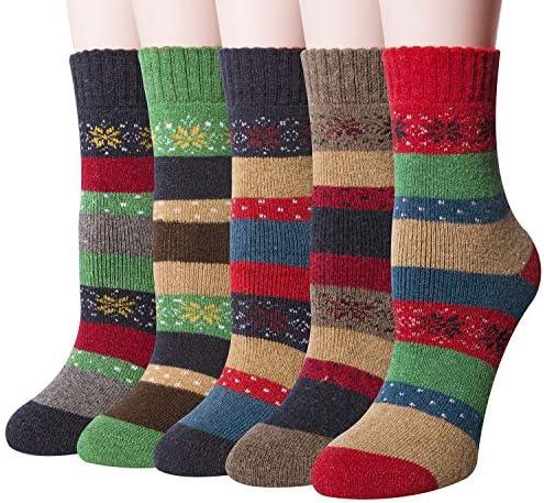 5 Paires 5 Couleurs de Chaussettes en Laine pour Femmes, Chaussettes Hiver Thermiques Chaudes pour la Randonnée et la Course Cadeau pour les Femmes