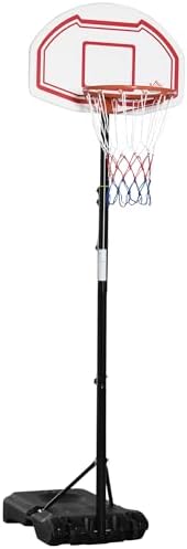 - 4 HOMCOM Panier de Basket-Ball sur Pied avec Poteau Panneau, Base de lestage sur roulettes Hauteur réglable 2,45-2,95 m Noir Blanc et Rouge