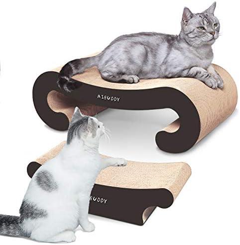 - 2 Aibuddy Griffoir pour chat 2 en 1 avec herbe à chat, carton durable et construction (55 x 22 x 19 cm ; 44 x 22 x 13,5 cm)