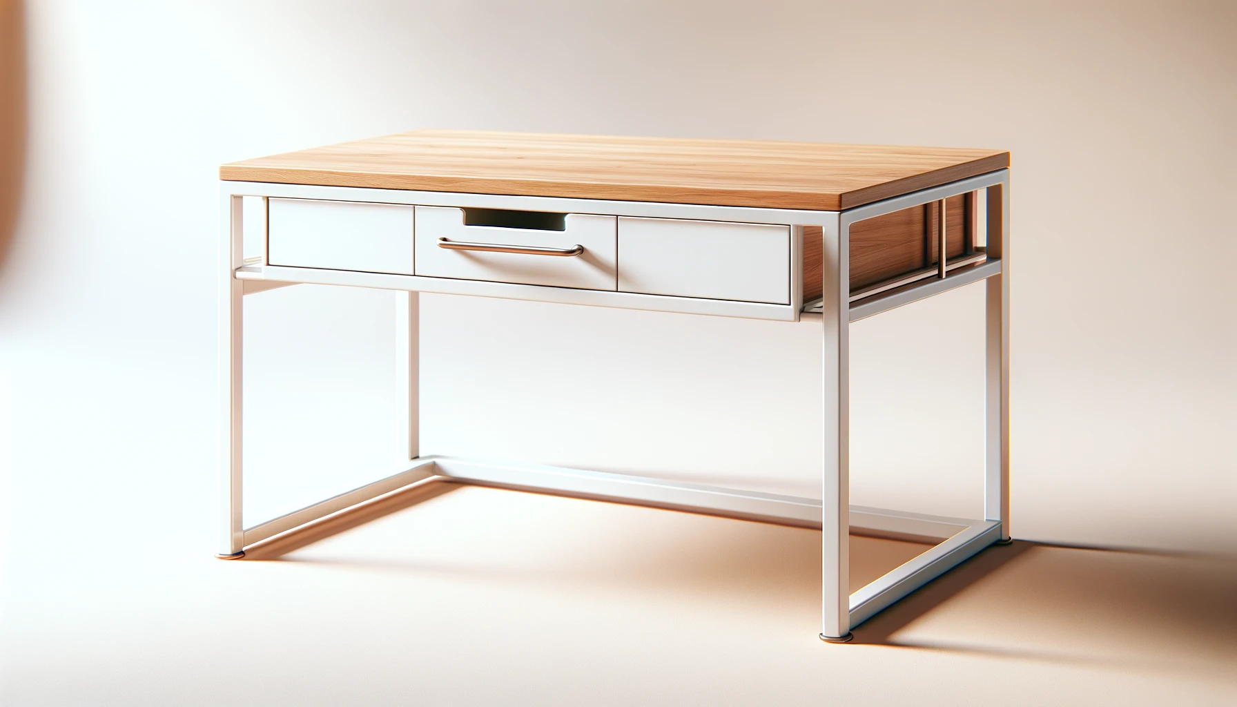 Construit avec un dessus en MDF de haute qualité et soutenu par des pieds en métal solide, ce bureau garantit durabilité, stabilité et robustesse. La surface généreuse du dessus de table offre amplement d’espace pour votre ordinateur, ordinateur portable, ainsi que pour une lampe de table, laissant de la place pour écrire et travailler confortablement. Les deux compartiments de rangement, situés de chaque côté du tiroir central, offrent un espace pratique pour organiser et conserver à portée de main tous vos accessoires de bureau essentiels, des clés aux blocs-notes et stylos.