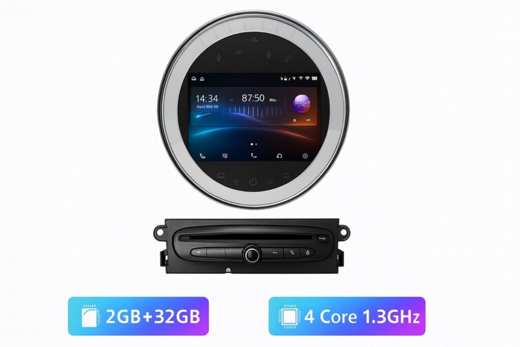 Conçu sur mesure pour les modèles Mini Cooper S, Clubman, Cabrio, Clubvan, Coupé de type R55, R56, R57, R58, R59, cet autoradio remplace l’unité d’origine sans modification ni découpe. Tout est plug & play, les faisceaux sont inclus, et l’installation est guidée.