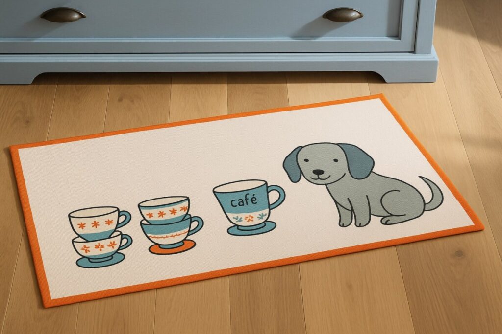 Avec son illustration d’un petit chien espiègle et ses couleurs douces, le tapis « Bouille d’Amour » transforme n’importe quelle pièce en un espace chaleureux et accueillant. Il est idéal pour les amoureux des animaux, mais aussi pour toutes les personnes souhaitant ajouter une note de bonne humeur à leur décoration.