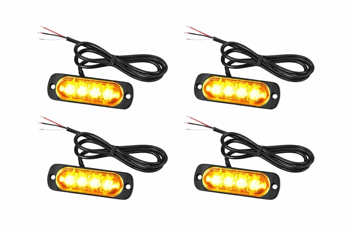 Chaque feu du lot intègre 4 LED haute intensité, capables de produire un effet stroboscopique ultra-visible. Ils se fixent facilement sur vos véhicules ou équipements grâce à leur design compact et leur alimentation universelle 12/24V.